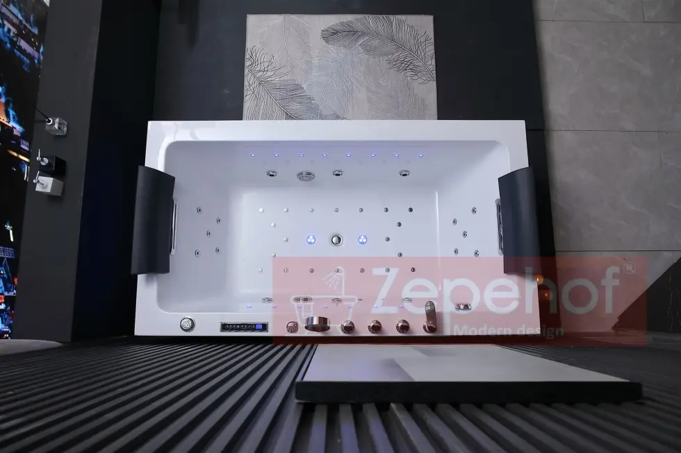 Wanna z hydromasażem EB-D871 prostokątna 180cmx100cmx65cm DYSZE OBROTOWE, MASAŻ KARKU, WODOSPADY, PILOT